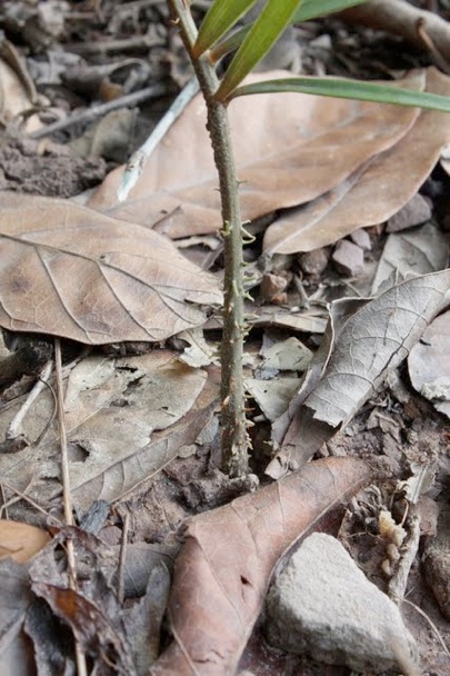Zamia spartea na lokalitě v mexickém státu Oaxaca, včetně jedné formy s šedavými lístky a řapíku s ostny.
